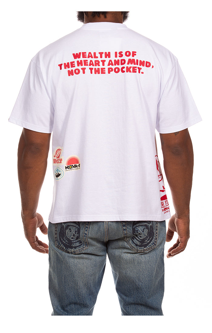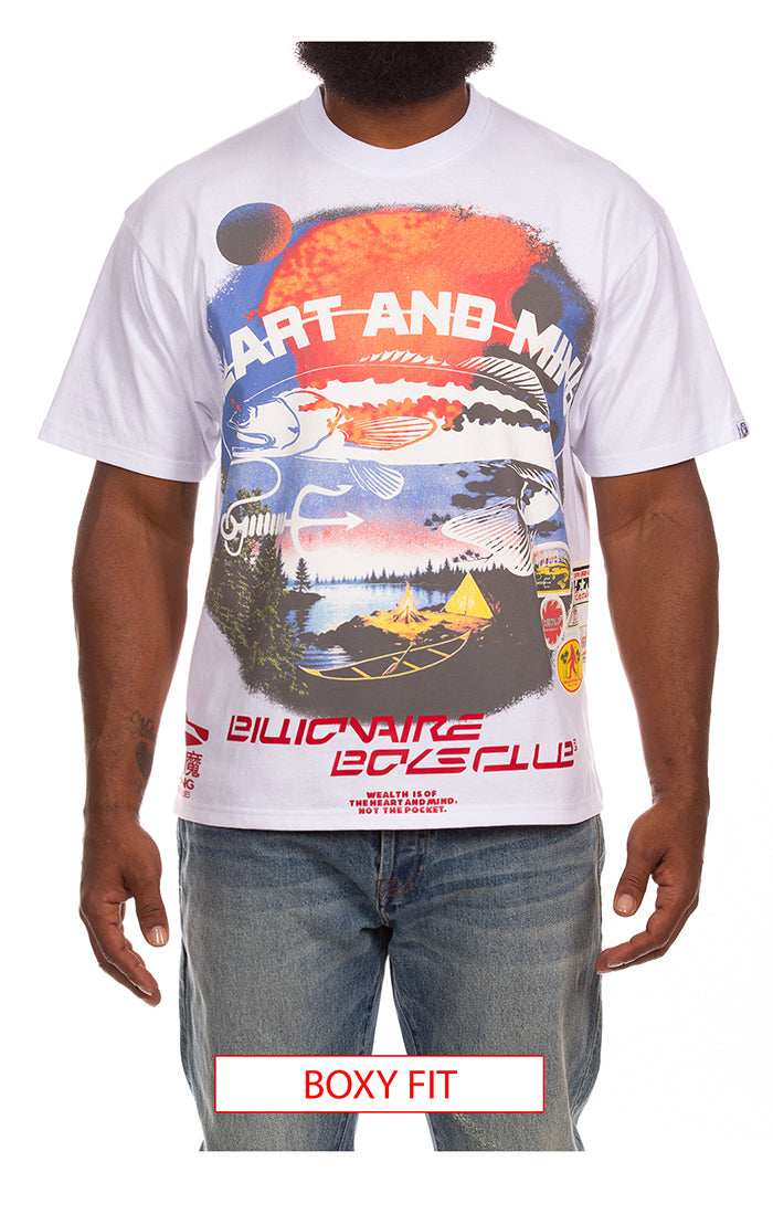 BOXY FIT SS CREW NECK HEAVYWEIGHT KNIT SHIRT WITH FRONT AND BACK SCREENPRINTS
